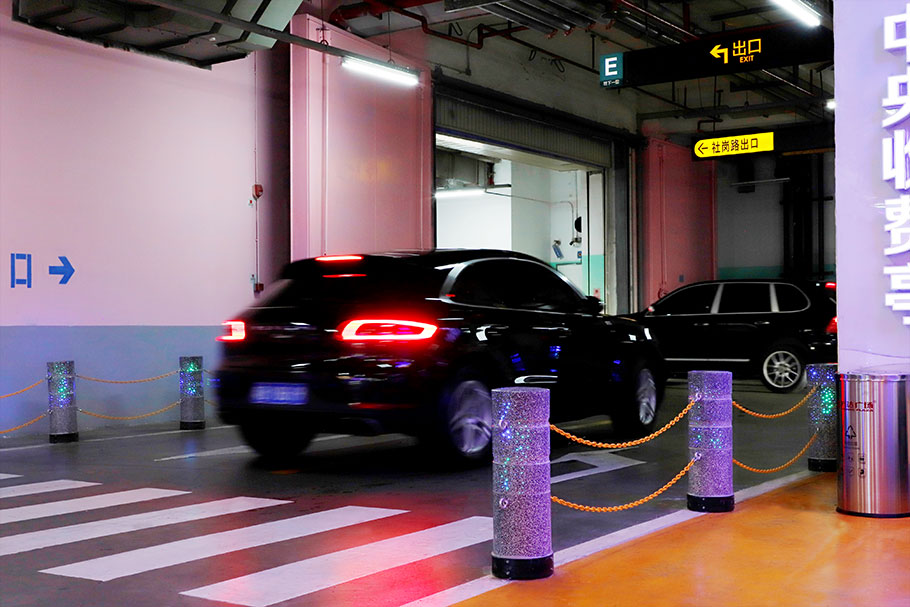 新型路障石材具有擋車功能,提升場(chǎng)所的形象和安全性,夜晚展現(xiàn)出特別絢麗的效果